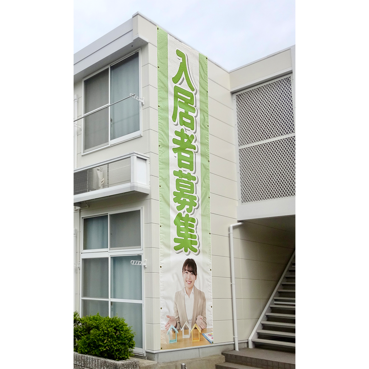 主に建物壁面の昇降機などに取り付け、 広告、啓発、応援などに多く利用されます。
